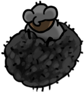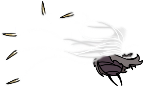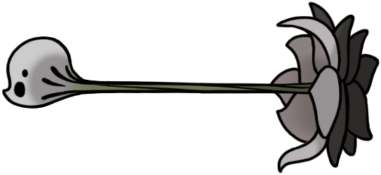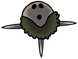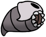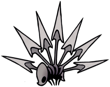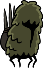 This is just a hovering ball of moss with some long, retractable spines, and a white mask with three expressionless black holes. I always like the simplicity of taxonomically ambiguous spike-ball enemies, but this one is especially intriguing, and I like Hornet's opinions on it. She's a harshly serious character, but can't seem to hide her love of soft, fluffy creatures throughout her entries. It's also interesting that she finds the hoker's mask more "disturbing" than the similar masks worn by so many other creatures, including herself.