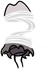 You can't attack these lifeforms, but if you can reach the ceiling of Voltnest's central shaft, you're drawn into a boss battle against in a boss battle against a larger, possibly more "mature" cluster of polyps...or maybe the whole place is one big colonial organism, and the "voltvyrm" is the central brain of it all? It doesn't have any needolin dialog, indicating that either Hornet is correct about its lack of self-awareness, or it's simply too far removed from Arthropoda to have any thought processes that "translate." I feel like the latter is more likely, since even the simplest "bugs" can have a song, but non-arthropod invertebrates are characterized as "unintelligent" throughout both Silksong and Hollow Knight. This notably includes Cnidarian-like forms, such as the aerial jellyfish that bug-kind evidently consider spooky and disturbing.