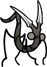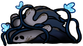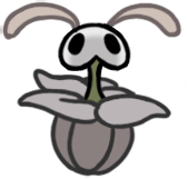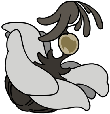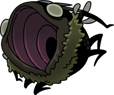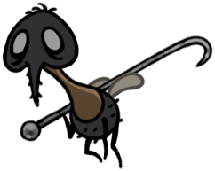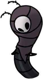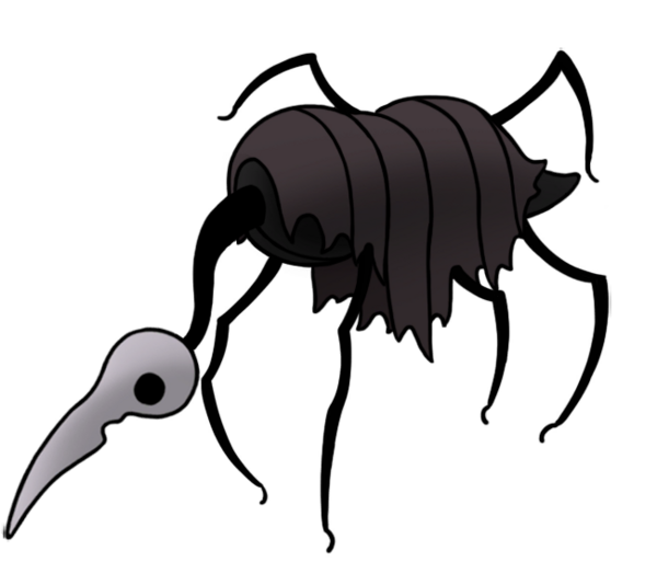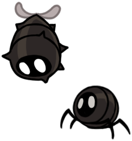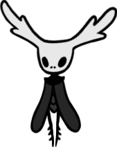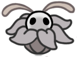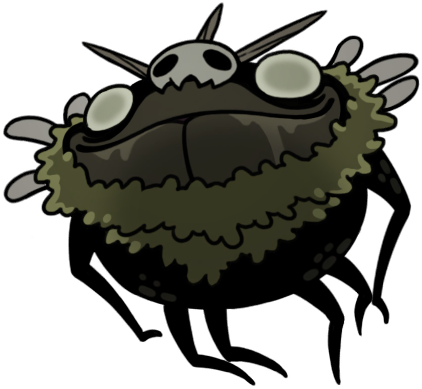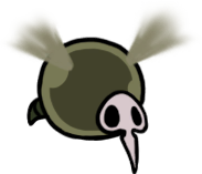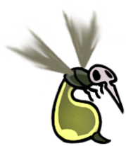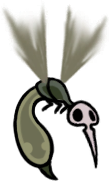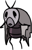 My very favorite animals, who are also my very favorite insects, are now my favorite "race" or "faction" of Hollow Knight continuity. Perfectly capturing all the scruffy cuteness of their inspiration, they're characterized by sparse bristles all over their fat, grey bodies, very large white eyes - usually exhausted looking - and charmingly droopy, tapering little proboscises. They couldn't possibly be more precious and perfect; this is exactly the visual essence of a fly's aesthetic charm, zero notes!