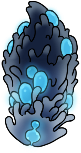 These are actually mutations of enemies we've seen before; the plasmid still resembles the gromling it used to be, but mostly covered over in pale blue flesh, leaving only a luminous eye and part of the mouth exposed. The mature grom on the other hand is almost unrecognizable, now anchored in place and looking more like a fabulous, goopy blue nudibranch than anything else, bright blue plasmium blisters erupting from its coat of jellylike cilia. Both can spit plasmium that damages, rather than heals, and their own health constantly regenerates.