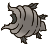 "Small bug that crafts a shell of sharpened coral. Spins its shell at rapid speed to cut through crust and bone.