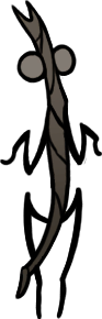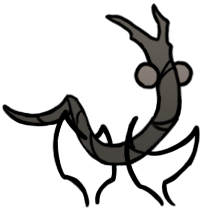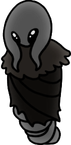 Stilkin are lovably nasty bugfolk, solid black with extra-large white eyes and sharp needly snouts, who cover themselves in moss and stalk other bugs with poison-tipped darts in Bilewater, resentful of the Citadel for poisoning their home. Their leader, Groal, presumably used to be the same kind of bug, but after absorbing the soul of a snail shaman, he began to mutate into something else, craving more and more bug prey and incorporating their souls to gain ever more power.