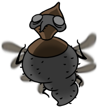 Yarnaby is a small, utterly darling little fly, entirely different in style from the fly-folk of the Slab, but still distinctly Dipteran. Even with a pair of tiny fangs in place of any visible proboscis, this design is almost exactly a little nubby fruit fly or phorid fly!