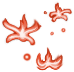 Another organism from the coral gorge of the past, but not coral-armored. The basic kai is a shiny, gelatinous looking reddish ball with narrow black eyes, a subtle upturned point for a "nose," tiny blue insect wings on its sides, a third wing on its rear, a row of stringy black legs along its belly and a matching row of "legs" along its back, overall evocative of a "fish" swimming around the "reef!"