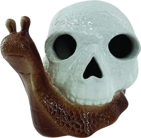 Almost all examples thus far have carried a human skull around as a shell, or at least a snail shell with human skull features. I speculated a little in my video review that these represent another supernatural curse that may befall a human being, as we already saw play out in one Junji Ito manga, but here in the Halloween Bestiary we demand scientifimical logic and reasoning beyond Ito's cryptic glimpse into the most enviable life of "Slug Girl."
