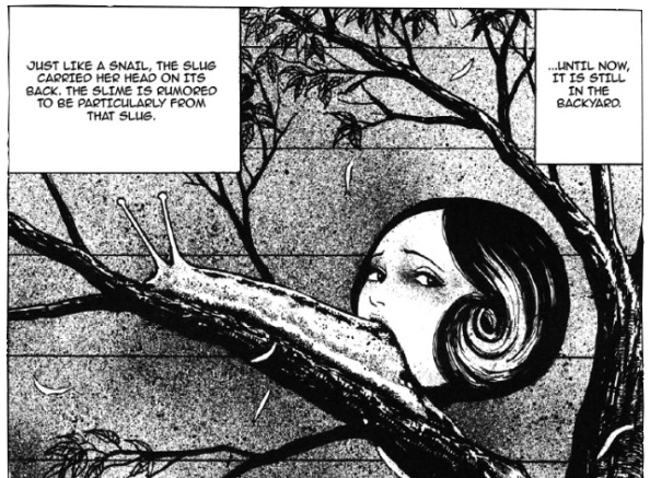 I'm not going to declare Ito's creation a SNOUL (Snail Ghoul) and presumptuously attach my own lore to it, since I happen to like his entities without an explanation. The world has room for many unrelated head-snails and skull-snails!