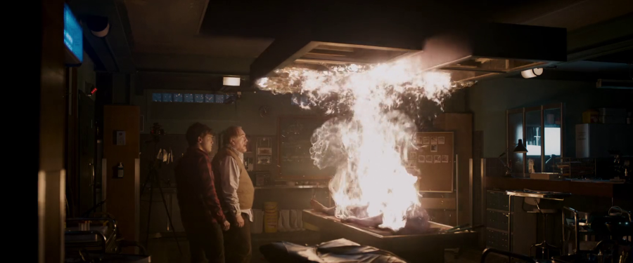 There is little time to mourn. Still unable to leave the morgue, they realize there may be no course left to take but to finish what they started. The way back to the autopsy room is by now filled with smoke from the fire, and we have another intense scene as they're attacked by corpses we can barely see through the haze, and I'd argue that they're significantly more frightening than even the gruesome individual we previously glimpsed.
