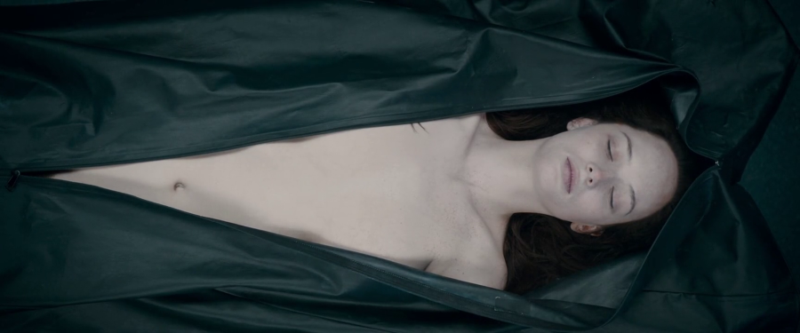 With many classic trappings of a "haunting" and even tropes as overdone as a connection to the Salem Witch Trials, The Autopsy of Jane Doe is perhaps a bit conventional for this feature, but a vengeful "spirit" interfering with its own autopsy isn't so conventional a setup, and there's the little sticking point that this can't be considered a ghostly presence if she isn't really dead. She is mostly dead, yes, select parts of her are even beginning to decay, but she's technically still teetering on the very edge of mortality, frozen in time before the actual final moment of complete brain-death.