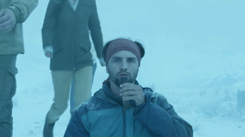 By the next day, the group has experienced some ambiguously paranormal activity, pursued by a frightening presence the audience has not seen, and taken refuge in a cabin. Paul has continued to act strangely, and after whispering something unknown into Ruthie's ear, he vanishes into the blizzard outside.