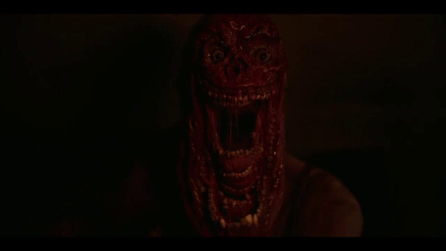 Even the final form it takes feels more "derivative" on paper than it is in execution. I've seen a lot of skinless ghoulies with messed-up mouths, but there's a wonderful quality to this one that isn't quite so common in modern horror, a madness to the lidless eyes and the smiles in its smiles in its smiles that leans more towards authentic childhood nightmare imagery than the excessive edginess suggested by its basic concept. And I very much doubt that the skinless, multi-jawed figure is the entity's "true" form in any sense, but its human disguise coming to "resemble" its true self about as much as a jellyfish would "resemble" a human if you put bones in it or a cactus would "resemble" a helicopter if you threw it in the air.