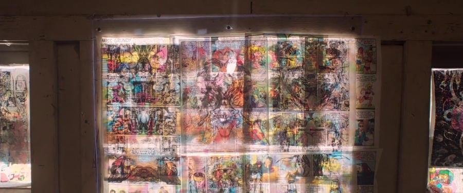 They shut and lock the door, and we get a quick glimpse of that tall man from early as he passes by a gap in the wood, then kicks open a hole in the door.