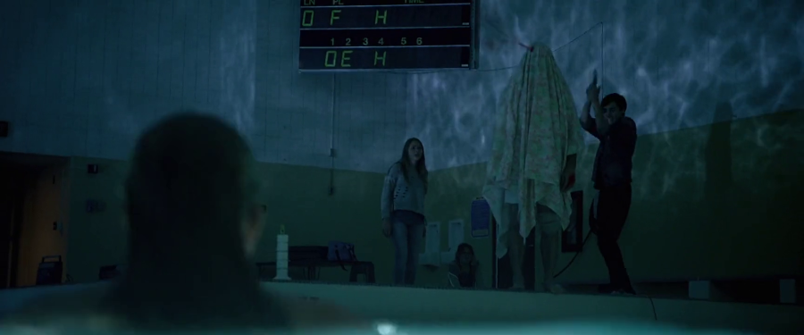 ...It is, unfortunately, smarter than they expected. When it finally arrives, sadistically taking the form of Jaime and Kelly's deceased father, it only circles the pool and throws the appliances directly at Jaime with extreme force.