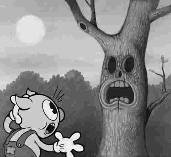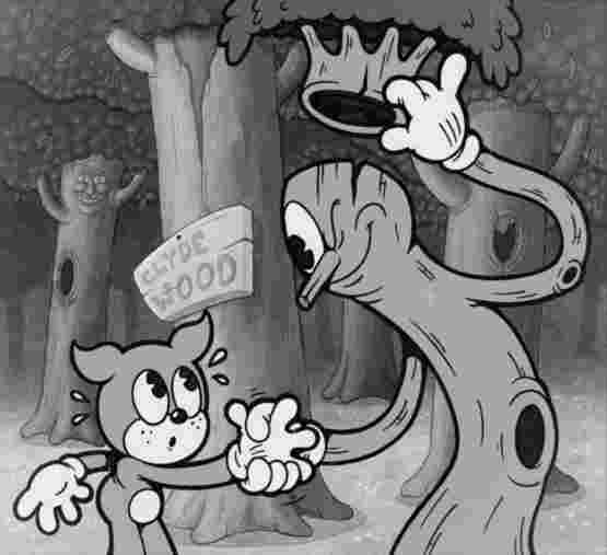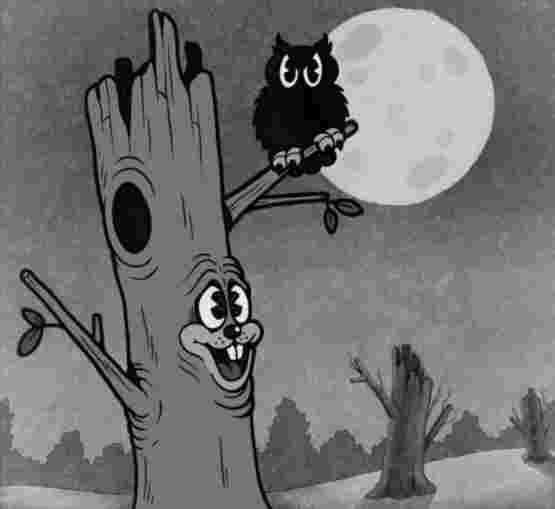 This cartoon also introduced a very unusual new character. Most of the others are kind of typical: there's a dog whose name we never really learn and he seems like the main character, then there's the pig, a rabbit and some others, but the most memorable moments defintiely come from a tree! The tree seemed to be almost a "bad guy" of sorts, since the animals shivered and chattered their teeth when he arrived and he seemed to love playing little tricks on them or just plain spooking them!