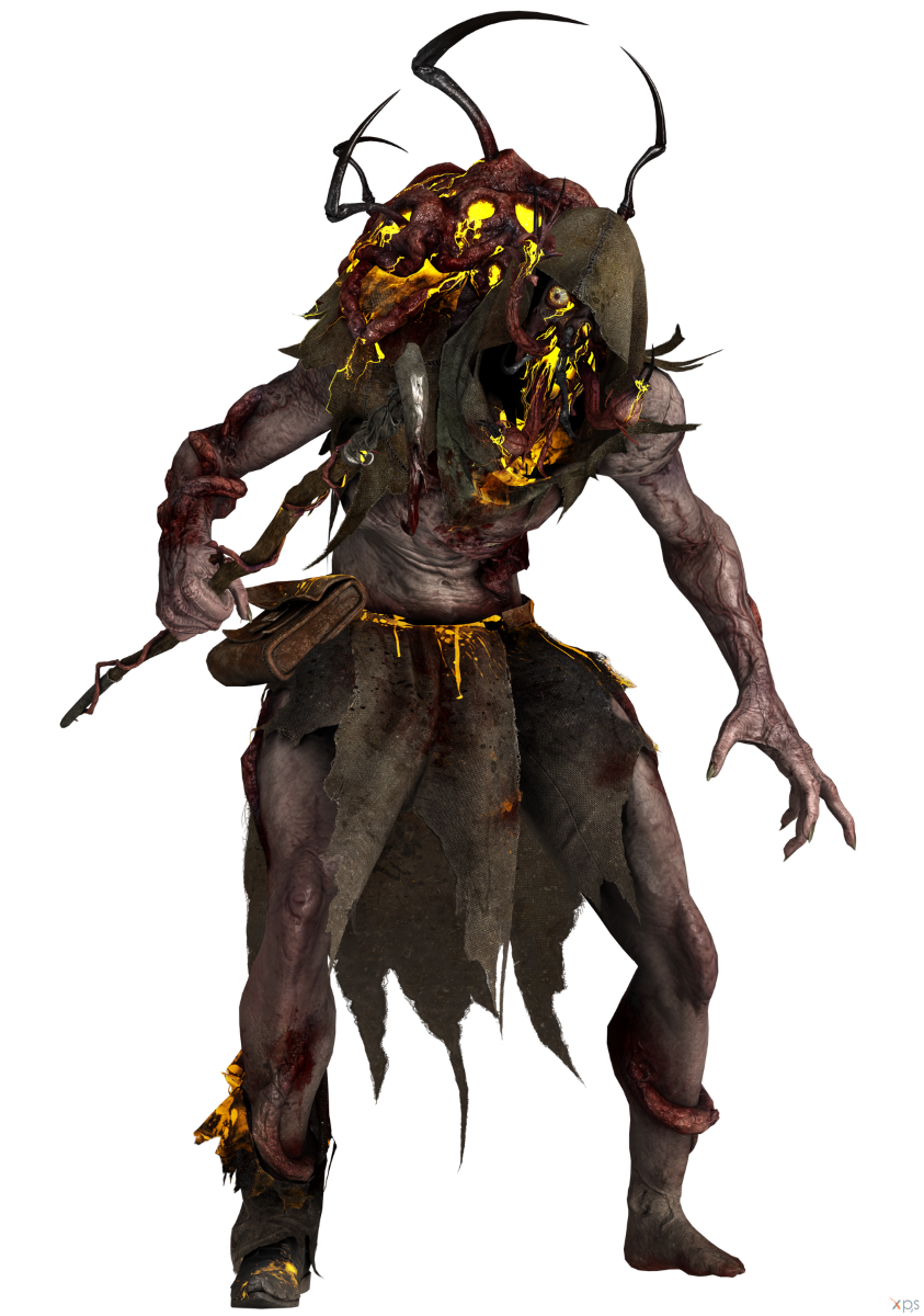 The Blight isn't just the nickname of Talbot's Killer Persona, but as we've previously touched upon, a parasitic infection that strikes The Entity, forming parasitic "pustula flowers" from the terrain of its realm that ooze a glowing ichor. It seems as though Talbot may have been stolen away to the realm specifically to treat this disease, and the ichor, essentially the pus you get when a cosmic being is sick, evidently held some of the secrets he'd been after all along. His experiments with the pustula "nectar" as he called it gave him heightened senses and strength, but mutated him horribly. Hunched and corpselike, he now has luminous eyes and an elongated, gaping maw lined with crooked fangs, a design that's neither too forgettably subtle nor too extravagant of a "creature."