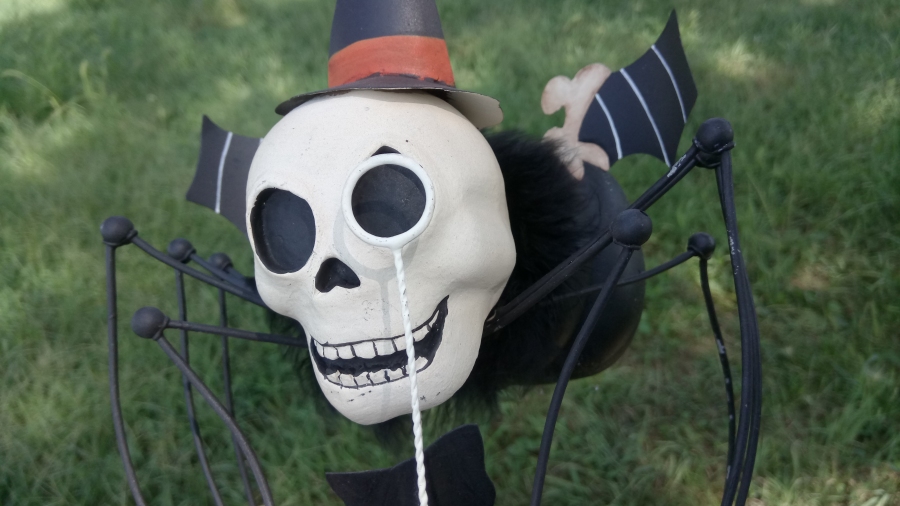 He's a skeleton, he's a pumpkin, he's a spider, he's a SKUMPDER! With a dapper ensemble and a pose that's TOTALLY tap-dancing! I daresay this would almost be the ultimate combination of Halloween's most fundamental possible symbols, exceeeept...