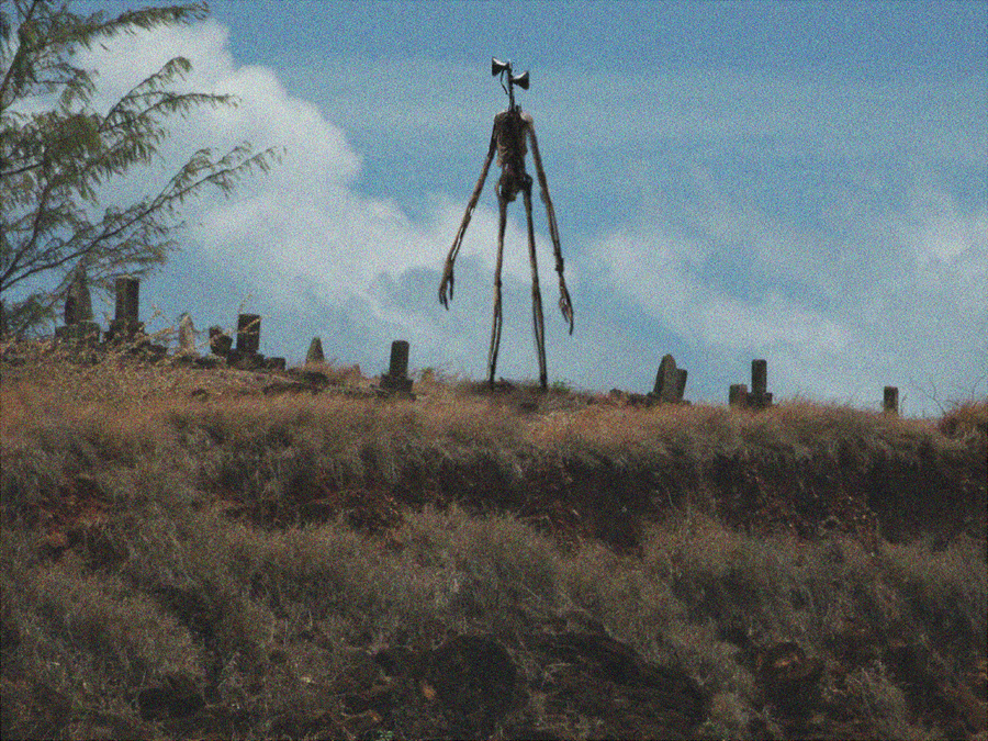 This is neither the first nor the last appearance by Siren Head, and it should be easy to see why it was an instant fan favorite. We've got all the tall, spindly creepiness of other horror figures, but with the far more interesting twist of inexplicable loudspeakers where its head ought to be...and cryptic, strange dialog shouted from the same. Sometimes it even imitates its victims - or previous victims - as a lure, while the rest of its gnarled body blends in with trees and power lines.