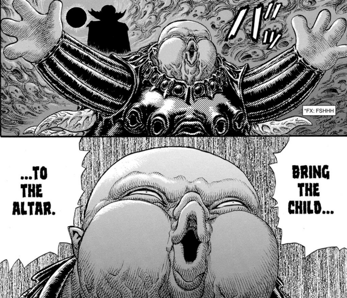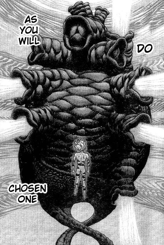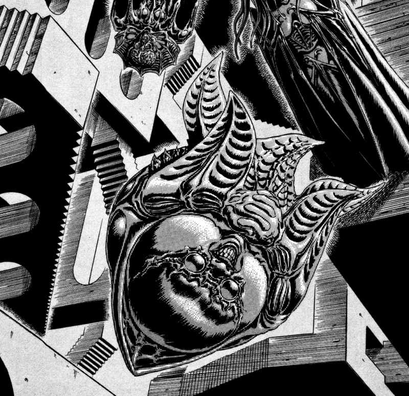 Sadly, Miura felt that The Idea of Evil explained too much of the story and setting, and declared the entire chapter non-canon. The vague shadow of the enormous heart can still be seen in some canon chapters, however, and personally I do hope it's still a canon presence even if we never do see it again.