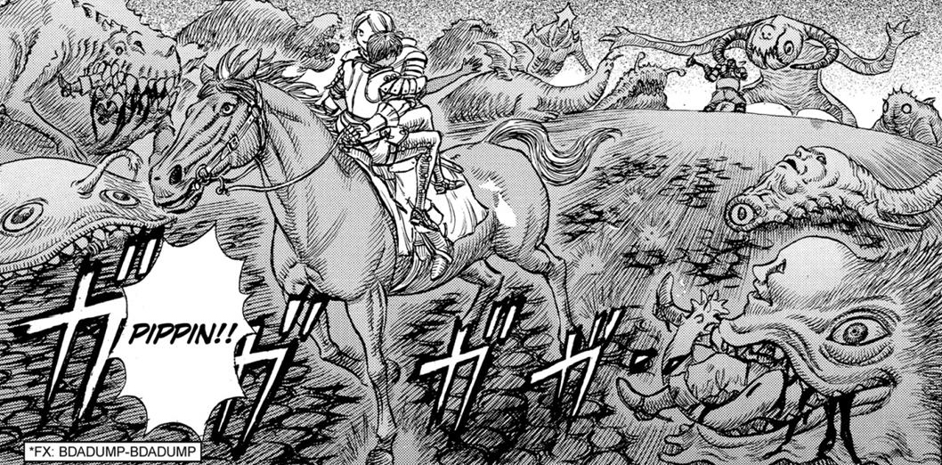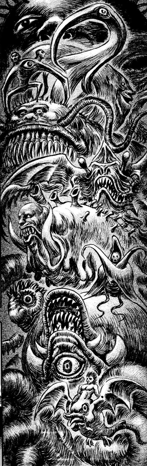 It's been five years since I first reviewed any background creatures from Berserk, when we looked through the Troll Cave Critters, and I've been asked ever since if I'm ever going to revisit the series. Well, today's your lucky day! Berserk has many, many moments positively crammed with creature designs, something Miura is pretty excellent at, but the first such scene in the series is also the most important, and still features some of his most intriguing demons. If you know anything about this manga, then you probably know the scene I'm talking about; it's how Guts actually became the Black Swordsman and how all the main events of the series were set into motion.