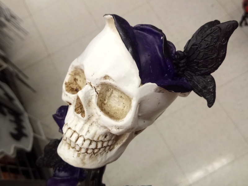 Last year, Michael's sold a I finally gave flower-eyes their own Peeper clutched by a skeleton hand. This year, they've got a whole different model of basically the same thing, but it's joined by something far stranger, and Here's a closer look: