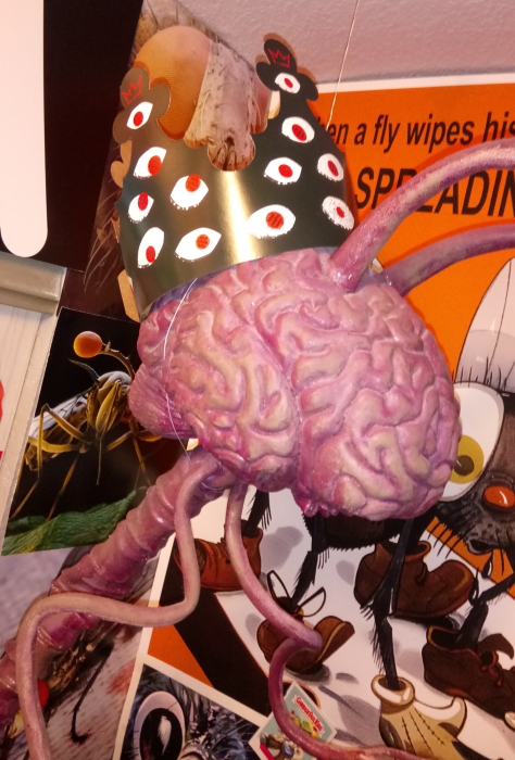 I'm not a Burger King person, but once I caught wind of these I obviously had to have some. Loosely inspired by the popularity of "Stranger Things," I think, Burger King went for a full-blown dark horror campaign this Halloween that I don't think I've ever seen from a fast food restaurant, complete with these amazing eye-covered cardboard crowns! As you can see, one of them now adorns my life sized Fiend Without a Face, one of the rarest Halloween props I own. I'm going to be absolutely heartbroken when its latex inevitably breaks down, but so far it's held up for nearly fifteen years and counting.