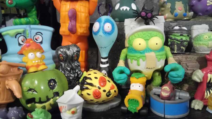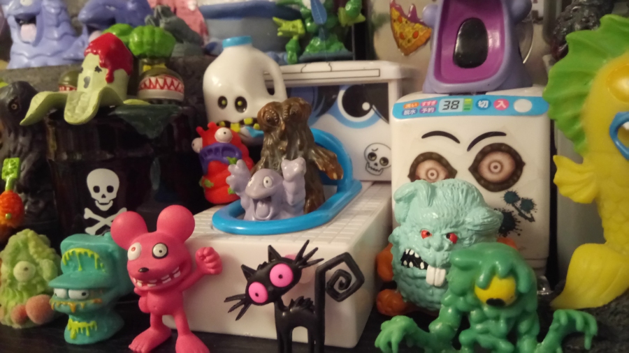 I missed including these in my Wal Mart post, and almost missed their existence entirely! They were hidden away in the arts and crafts section, an entire bag of ultra-tiny Halloween cats suitable for scrapbooking and even custom charms or jewelry! You can see that every one of them are wonderful in some way or another, but I have two clear favorites you should be able to find quickly enough where I decided to put them, for whatever reason, among my collection of garbage monsters: