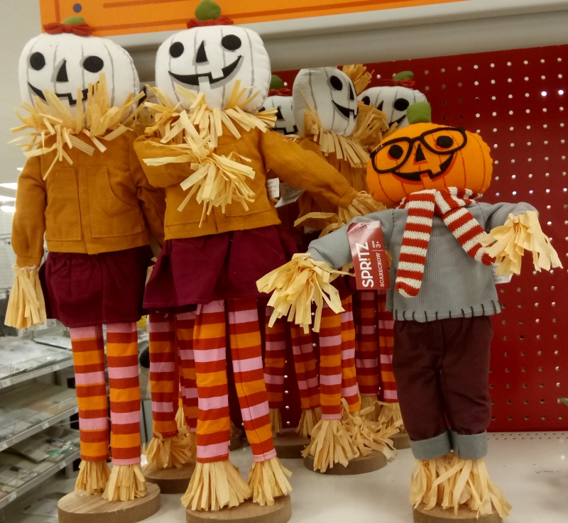 These Target items are here not because they especially stand out among pumpkinheads, but because they weren't brought out at all until November. It's actually pretty rare that I see Jack-o-Lantern headed characters like this for the post-Halloween harvest season, and I think that's because actual merchandise of them is considered so intrinsic to Halloween, but I more than welcome the excuse for their extended presence. Scarecrows are the only cool thing about November "Holiday" imagery.