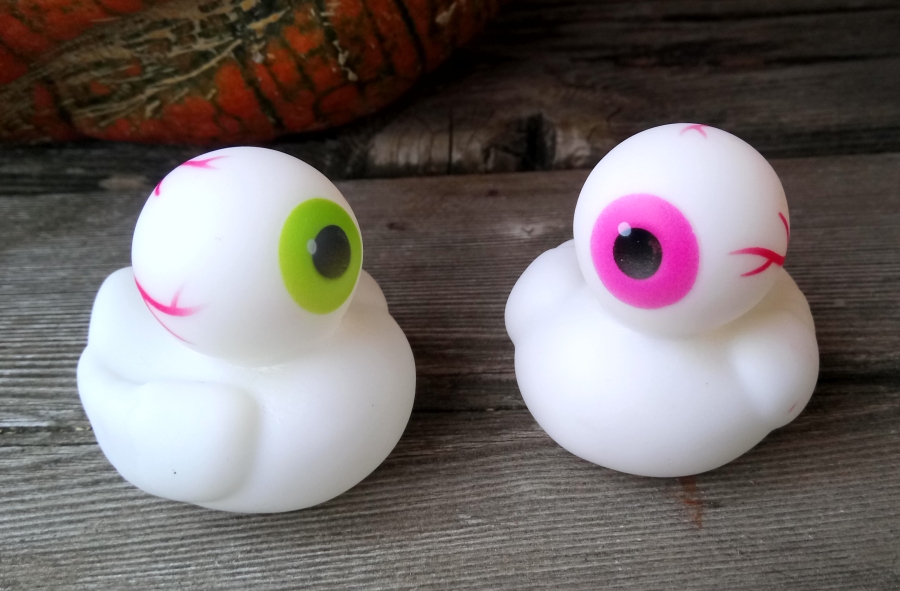 Well, this is only the greatest goddamn thing I've ever seen, let alone owned around 50 or 60 of now, since they're only about five bucks a dozen. The beautiful simplicity of a rubber duck with an eyeball for a head needs no rationalization, but what makes these even more fantastic are the wings. I know you can't quite tell here because they're pure white, but the wings of these things are not the same feathered ones sculpted on every other rubber duck by this brand. No, the wings are segmented, like they've got exoskeletons. THey actually bothered to give these an entire new body sculpt so they could make the wings more "alien," and not in any common, obvious way like modeling them into tentacles. These are something shaped like a bird, but not a bird. Not at all a bird.