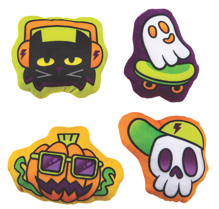 A set of little tiny bean-bag plushes in what they refer to as a "graffiti" style. I guess what they mean is that they've got "urban" fashions going on, like a skateboard or a hat. They're really cute though; they feel straight out of a Homestar Runner cartoon, right? I could see the skull in the hat as just what Coach Z looks like when he dies, even if that skull wouldn't actually fit within the confines of his small, spherical head. Just another one of his many surprises.