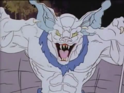 Skinman's bat form wasn't quite as interesting in the TV show, either. What stands out to me the most about the action figure is that he has a GIGANTIC bat face on his shoulders, and that's also where his wings are attached. Toon Skinman just goes full anthropomorphic Chiropteran, with the wings integrated into his arms, though he's still one of the coolest and most realistically detailed bat monsters I had ever seen at the time.