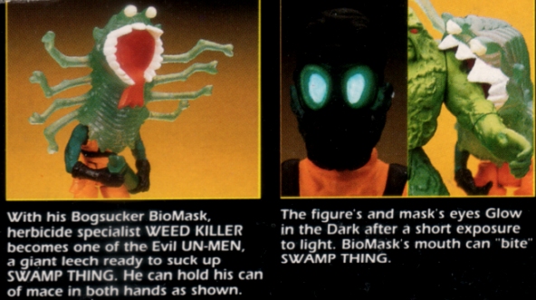 Weed Killer's mutant form comes courtesy the "BOGSUCKER" Biomask. The what? Excuse me? Is that even an animal?!