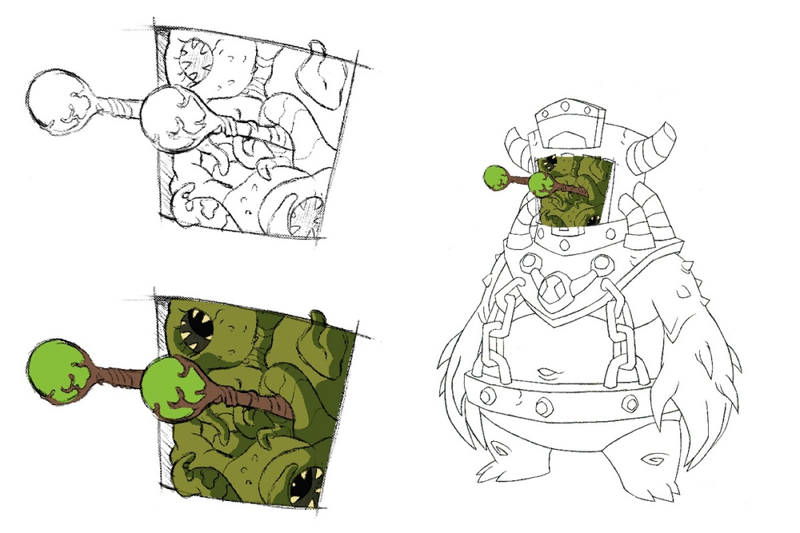Loosely expanded from a minor alien in an actual episode, Gurge is apparently a concept for a being that fights by inflicting extreme nausea. I love how it has elements of both a tentacled mollusk and a bruteish mammal, its head almost like a cross between the saclike, blobby cranium of an octopus and a snarling babboon; it's a combination that feels very much appropriate for a creature with "grossout powers."