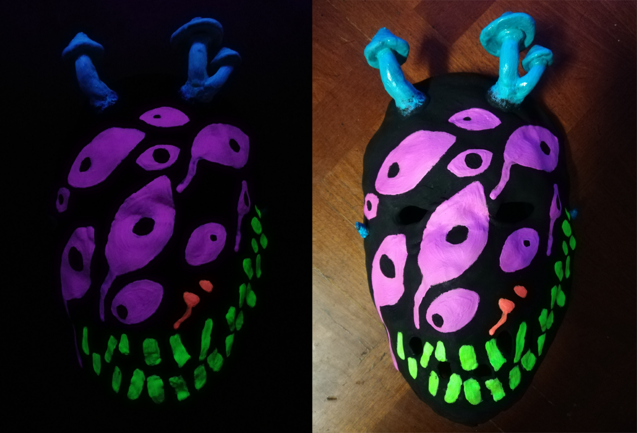 In distance shots, this costume gave me a "horror manga" vibe, and I'm not even sure how, but it may be because I thought for a split second that the face was, in fact, a drawing. When you do look at those real vintage costumes, they often have kind of abstract or symbolic ideas behind them rather than an obvious concept for a specific "monster" or "character," and that's the same impression I get out of this one!
