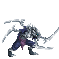 Easily the one design I've seen from Monster Legends that I'd genuinely call disturbing! Rotten has the limbs and torso of a zombie with realistically bruised and gangrenous looking flesh, but instead of a head, he simply has a huge cluster of fleshy, saclike cysts visually modeled after sea squirts, just one of which sports an eye. The only thing breaking the grisliness are the cartoonish, blue ghosts emerging from those sacs, with tattered "ears" or "pigtails" that give them a bunny-like appearance. It's a nice way to mitigate a design that would, admittedly, seem a little out of place in a game that doesn't usually go for sheer body horror.