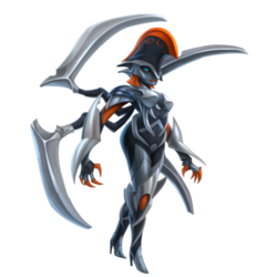 Jabaline is basically as humanoid ant warrior, and they even remembered that soldier ants are female, but they didn't lean too far into making her look human; just enough for her to look really cool, like she could be someone wearing strange, insectoid armor, but it's all much too thin to have a person inside, and her head is full-blown, glassy-eyed ant monster!