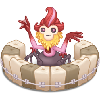 With a spider-like lower body, branching arms, a skull-like face and shocks of red hair, this one looks ominous and even has an equally ominous description...but the goofy little mouth takes a lot of edge off, and all this monster does is play the piano! It does, admittedly, do so in an appropriately foreboding key.