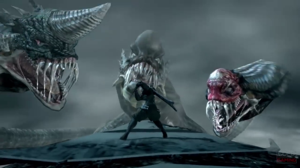 Speaking of snake heads, though, you later battle a "hydra" while you ride atop an airplane, and it's a fairly unique looking specimen. It possesses one head at one end of its body, three at the other, each with a face more like a deep sea eel than a reptile. The central body is also a lot of fun, since it's sort of a broad, flattened lump with huge suckers on its underbelly!