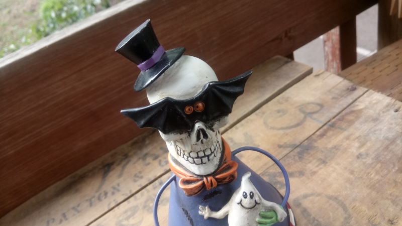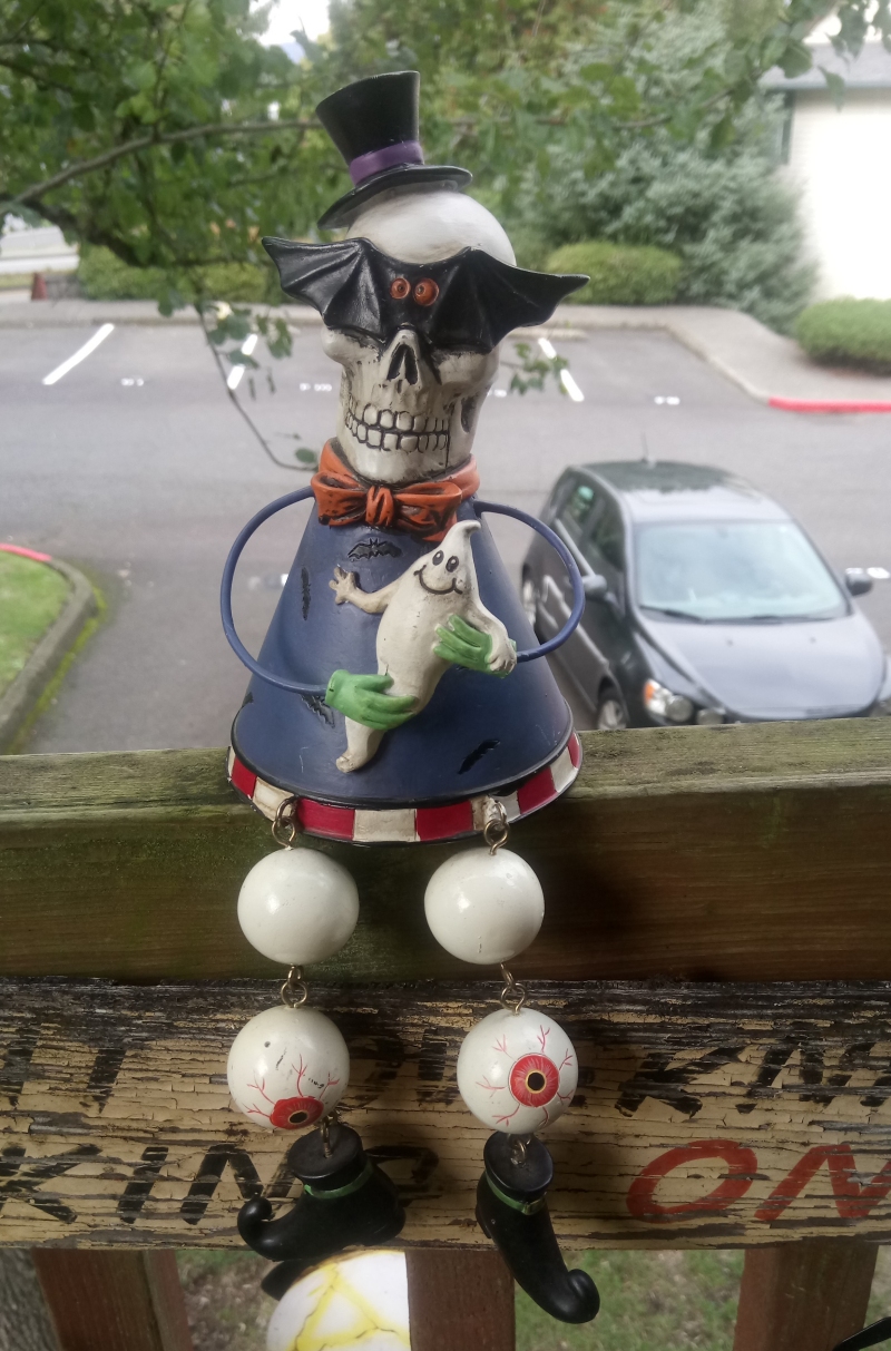 The bat mask is just sort of cute and a little silly. Holding a ghost is one of those things that just almost makes sense until you stop to question it. The bat mask, the pet baby ghost, and eyeballs for legs, however, are the formula propelling this character to heights of madness other holiday decor can only dream of, and that's even before we tie it all together with its adorable bat-patterned sweater, or dress, or whatever the thing is wearing.