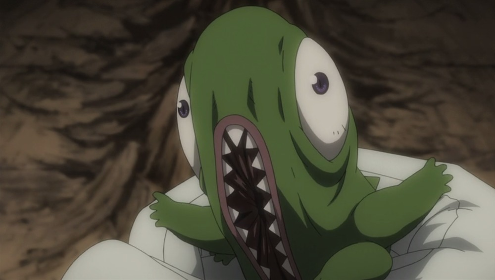 The Homunculi are seven weirdos who came from Alchemy and are named for the seven deadly sins. Gluttony is interesting, my second favorite of the bunch, for his terrifying ability to eat absolutely any material and particular appetite for human beings, made all the more disturbing by how goofy, childish and almost innocent he is. He's just this squat, round, bald cartoon man with a big round nose and a big mouth and those eerie, white dots for eyes and he can just kind of bite through a wall and then through your face like it's all made of the same butter. That's awful. I love him.