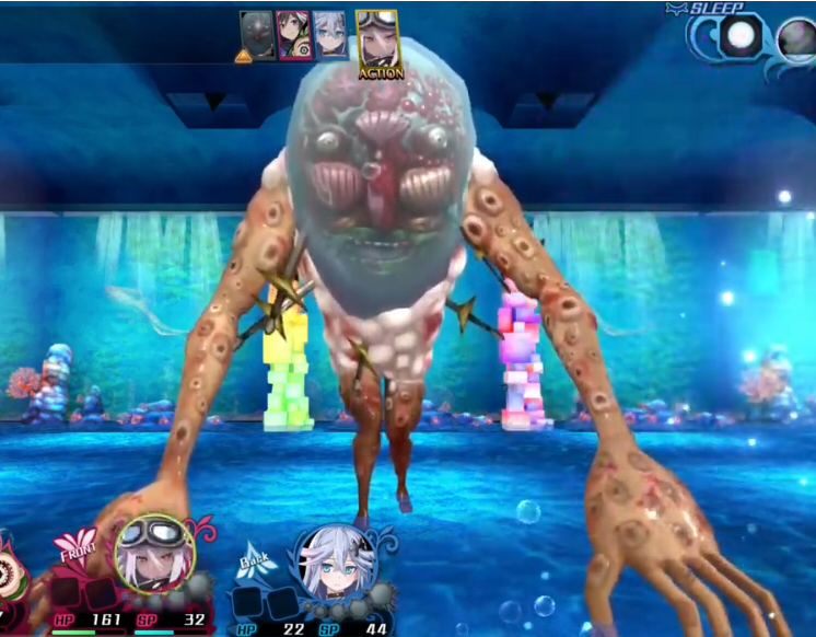 So now we're looking at some of the BOSSES! These aren't "Marchens," but more powerful beings known as Nightmares! These bastards can apparently chase you and damage you on the actual map, without even initiating a battle sequence yet. Part of gameplay is running away from these roaming Nightmares, and if you do enter a full blown boss fight, you can't run away or actually kill the creature; reducing its health to zero will only temporarily incapacitate it. This changes only when you kill the "core" of their respective dungeon area.