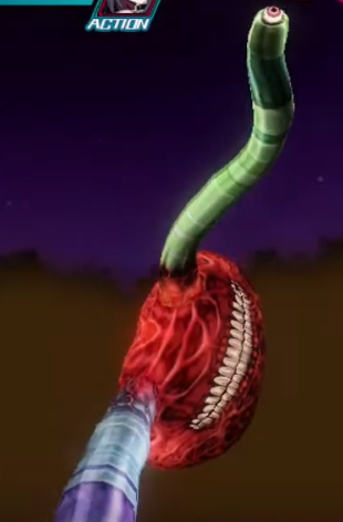This one isn't too absurd; I could see it as a regular enemy in just about any RPG game! It's a Rafflesia flower, but with a fanged worm-like sphincter mouth in the center and a row of little beady ocelli. The rest of it is a slug-like body that tapers into a second worm-head, with three long, spiny jaws, a little tad Graboid-esque!