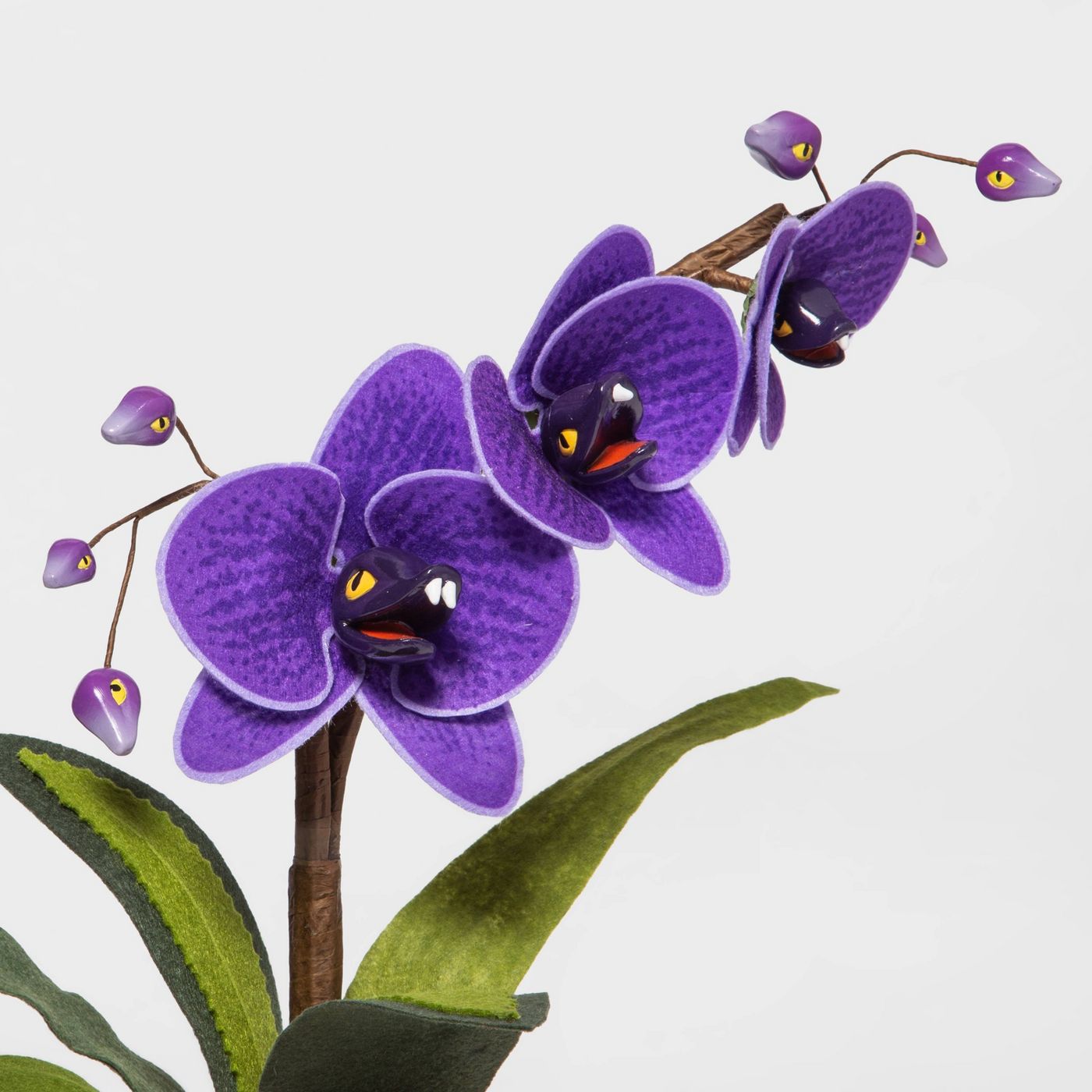 The most impressive of the new plants, this one really looks like a chain of purple orchid flowers with cute little snake-like heads at their centers! They're also kind of rat-like, too? I guess I say that because their teeth are at the end of their pointy snoots, like a rodent's incisors. They even come in two sculpts, with the largest flower having two front teeth and the rest just a single fang each, then there's the additional clusters of smaller, mouthless snake-head "buds!" They kind of went all out for this one, I don't think any of the other Ghoulish Garden plants have this many distinct sculpts.