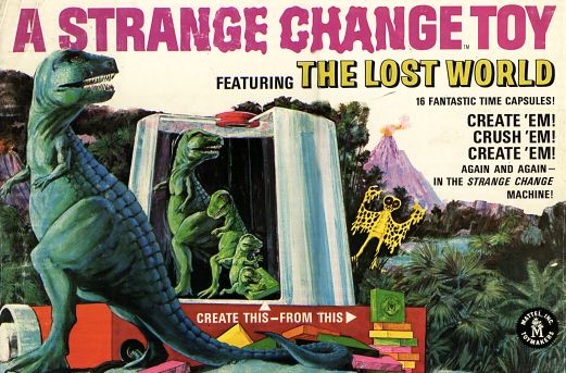 You'll have to watch this ad clip to understand what the "Strange Change Machine" was: a 1968 playset that heats up enough to soften its plastic figures and crush them into compacted tiles. Once heated again, however, the tiles would unfurl back into the same shape. Despite the commercial, the process of heating and uncurling a Strange Change capsule supposedly took a long time, probably longer than the average child's attention span, but it was still a pretty fascinating concept.