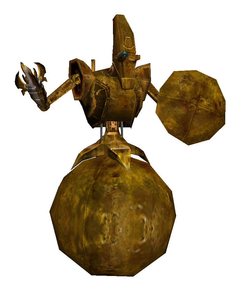 An innately loveable design, with its big head and clumsy movements. Featurewise, it evokes a cross between a lizard and a house centipede. A nicely bizarre touch: What appear first to be deepset eyes are actually several small spikes set in sockets!