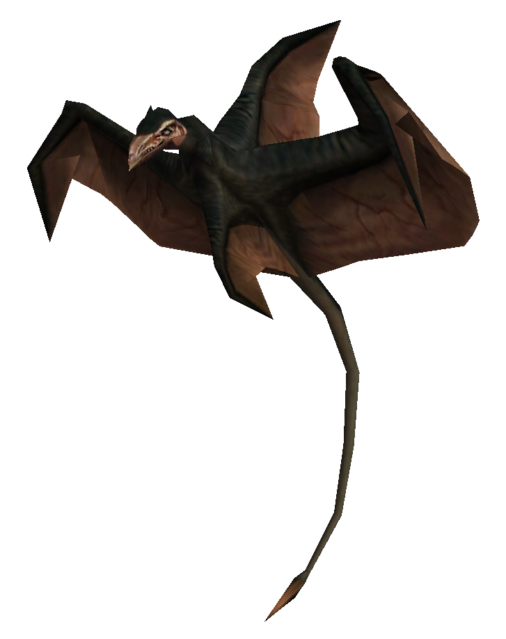 Luckily, Morrowind is a game with a lot of freedom, and you're free to fuck right off and just hoof it to wherever you want to go next! Unfortunately, you're surrounded by miles of fetid swamp. Even if you take the main roads and avoid the many contagious diseases they have to offer, that still means contending with some creatures a lot less chill than the eviscerated silt strider.These warped, pterosaur-like creatures are most commonly encountered in the mountains, but will assail you out of nowhere from a clear blue sky. They became reviled among players to the point of becoming a meme, and eventually the Elder Scrolls series canonly declared the hated cliffracer extinct.