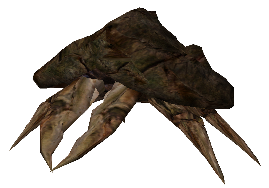 As you may know, "crab" is a general term for a wide variety of unrelated crustaceans, the shape continually evolving in a trend known as "carcinization." However, even by this generous definition, the Elder Scrolls III version of the mudcrab does not seem to be any kind of crab at all. Those are not claws, but appear to be a pair of very enlarged mandibles.