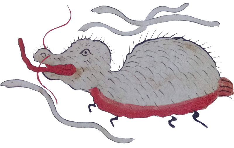 What's particularly interesting about this beast, however, is that it "associates with white worms" that wander about with it, and we're going to talk more on that in a moment.