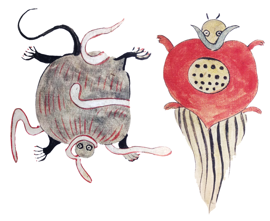 Both of the turtle masses are great looking characters. The Yin mass with its swollen, baglike body, little black claws and whiplike tail is actually one of the creepier Belly Bugs if you ask me; the thought of this thing living inside of you, turtle-like but not at all a turtle, is really pretty dreadful. Yang is a lot flashier, more colorful and kind of cutesier, and definitely has the feel of a more "refined" or "evolved" version. I also notice that it has a flowing, hairy tail, which isn't addressed in its description, but there IS an idea that very ancient, powerful turtles acquire such a tail with age; the same reasoning for the tail of the Pokemon Wartortle.TODAY'S REAL WORLD PARASITE: