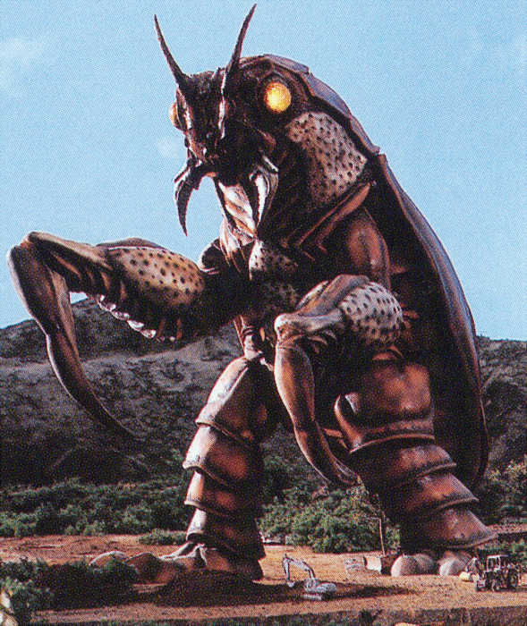 It's a great concept inspired by real-world entomopathogenic fungi, and it raises many questions that are never answered. Was the fungus already lurking in the soil, or was Shildoban already infected by the time it attacked? Is that why it attacked, driven mad by the parasite? And were both of them monsters when the infection began, or did one begin as either a natural insect or natural fungus until it was corrupted and mutated by the other? Whatever happened, it's a very fun and surprising twist on the usual battle formula, and I do believe one of the first times a fungus-controlled insect factored into popular fiction at all.