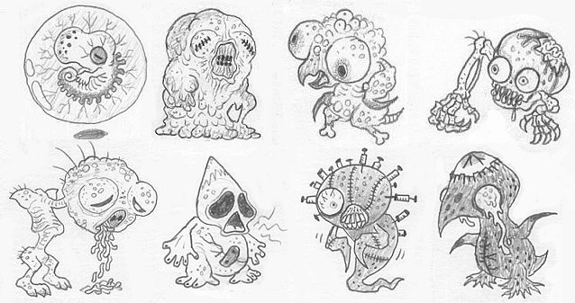I shared even older doodles in our overview of Mortasheen's history, but the very first batch of monsters ever recognized as "Necromon," the very first time they were uploaded, were the following eight thumbnail scribbles: